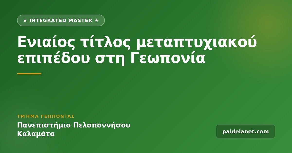 Integrated Master για το Τμήμα Γεωπονίας του Πανεπιστημίου Πελοποννήσου