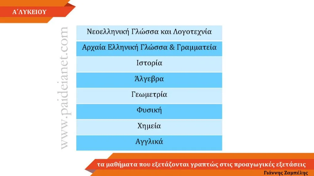 Α΄Λυκείου – Μαθήματα Ενδοσχολικών Εξετάσεων