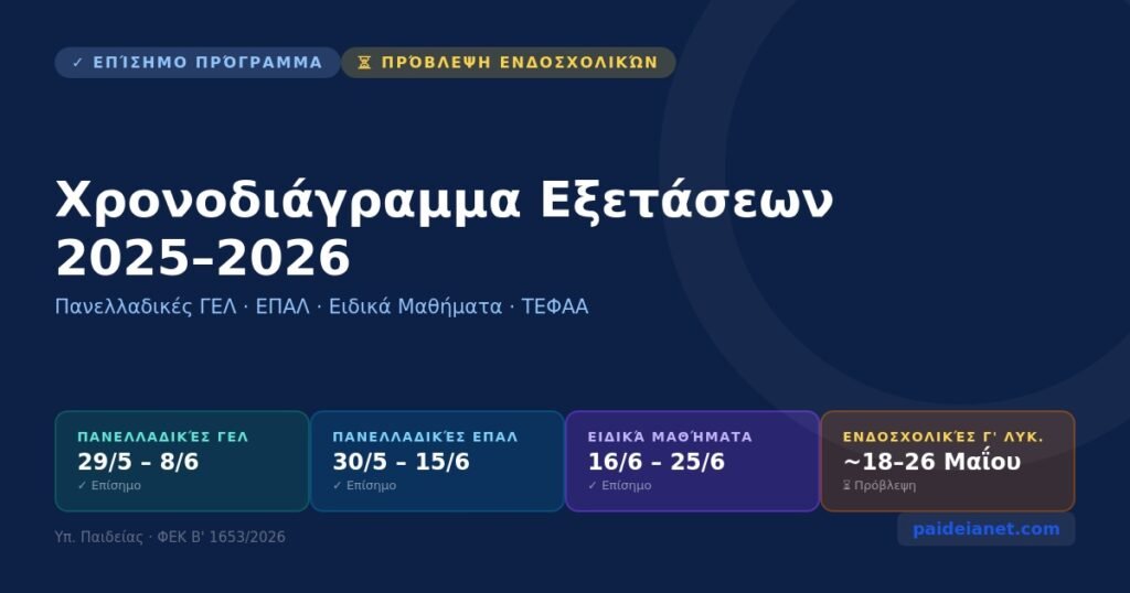 - Διάρκεια εξεταστικής περιόδου: 1–15 Ιουνίου (βάση ΦΕΚ)