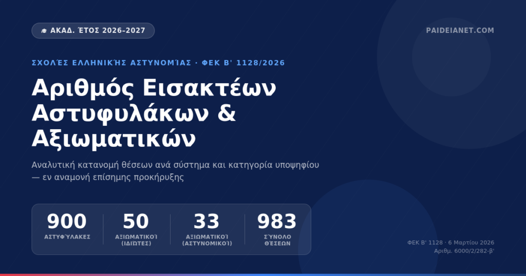 Κατάταξη των επιτυχόντων στις Σχολές του Λιμενικού Σώματος για το ακαδημαϊκό έτος 2026-2027.