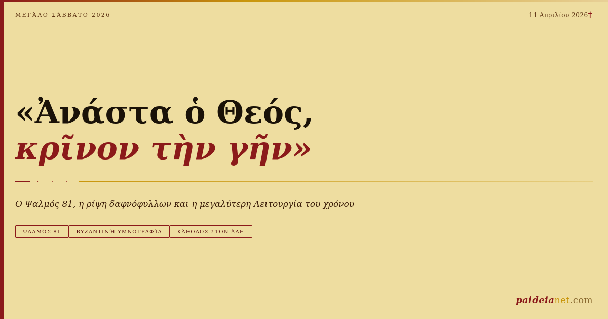 Ο Ψαλμός 81 και η μεγαλύτερη Λειτουργία του χρόνου — από το σκοτάδι του Άδη στο πρώτο φως της Ανάστασης