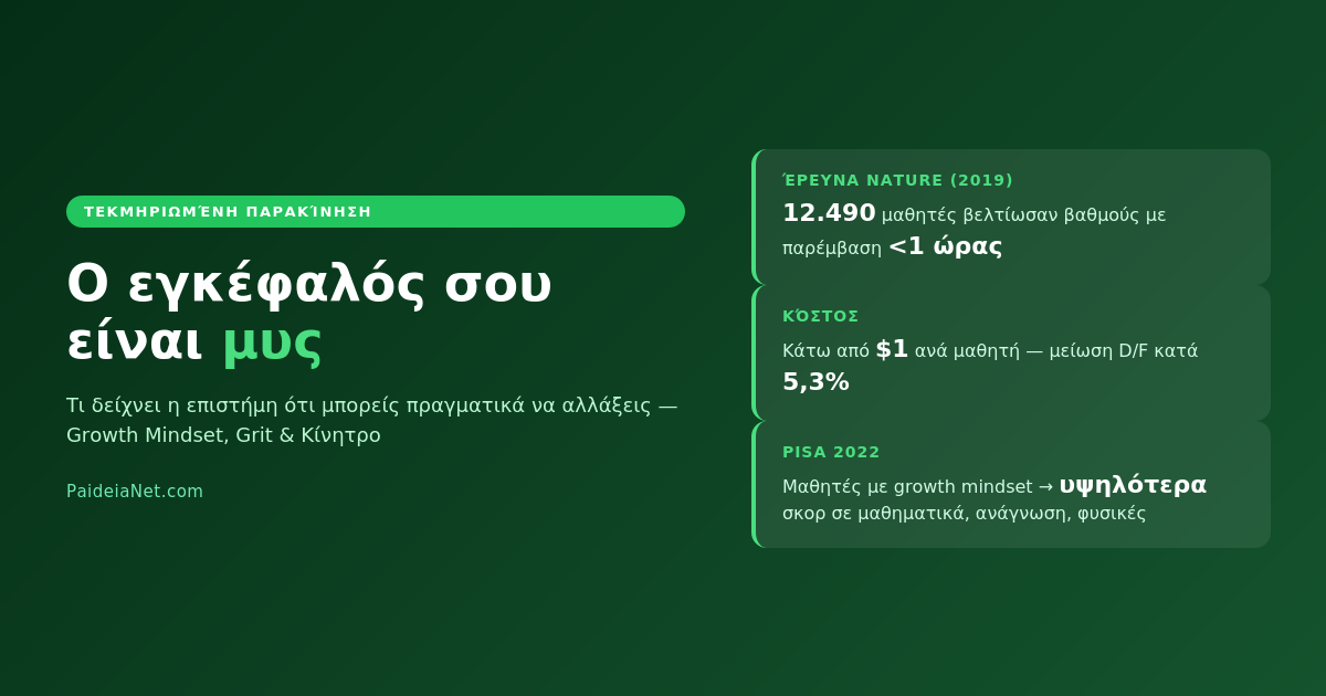 Τι δείχνει η επιστήμη ότι μπορείς πραγματικά να αλλάξεις — και πώς μια ιδέα κάτω από 1 ώρα βελτίωσε βαθμούς 12.000 μαθητών
