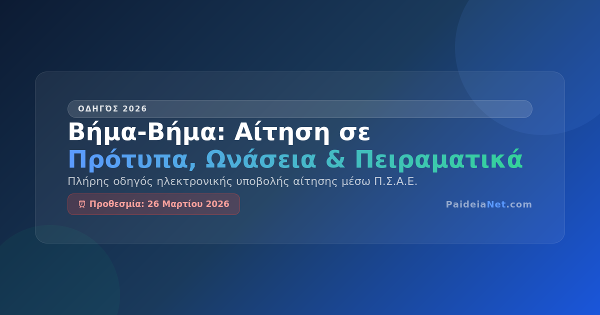 Πλήρης οδηγός ηλεκτρονικής υποβολής αίτησης μέσω της πλατφόρμας Π.Σ.Α.Ε. του Υπουργείου Παιδείας — σχολικό έτος 2026-2027.
