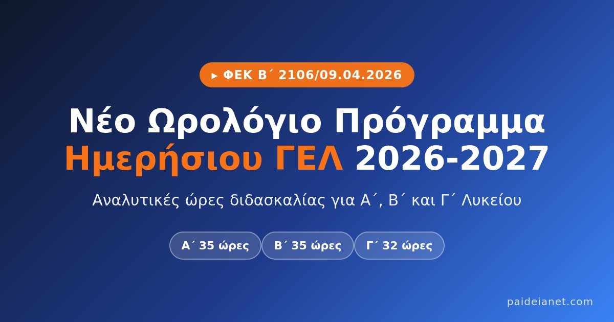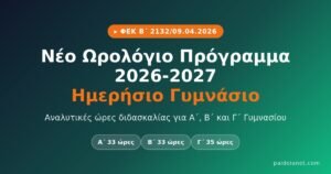 Νέο Ωρολόγιο Πρόγραμμα Ημερήσιου ΓΕΛ 2026-2027