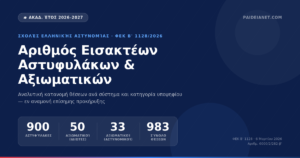 Δημοσιεύθηκε στην Εφημερίδα της Κυβερνήσεως (ΦΕΚ 1122/Β΄/05.03.2026) η Υπουργική Απόφαση 26786/ΓΔ4 με την οποία καθορίζονται τα 300 Δημοτικά Σχολεία και τα 300 Γυμνάσια που θα συμμετάσχουν στις Διαγνωστικές Εξετάσεις εθνικού επιπέδου κατά το σχολικό έτος 2025-2026.